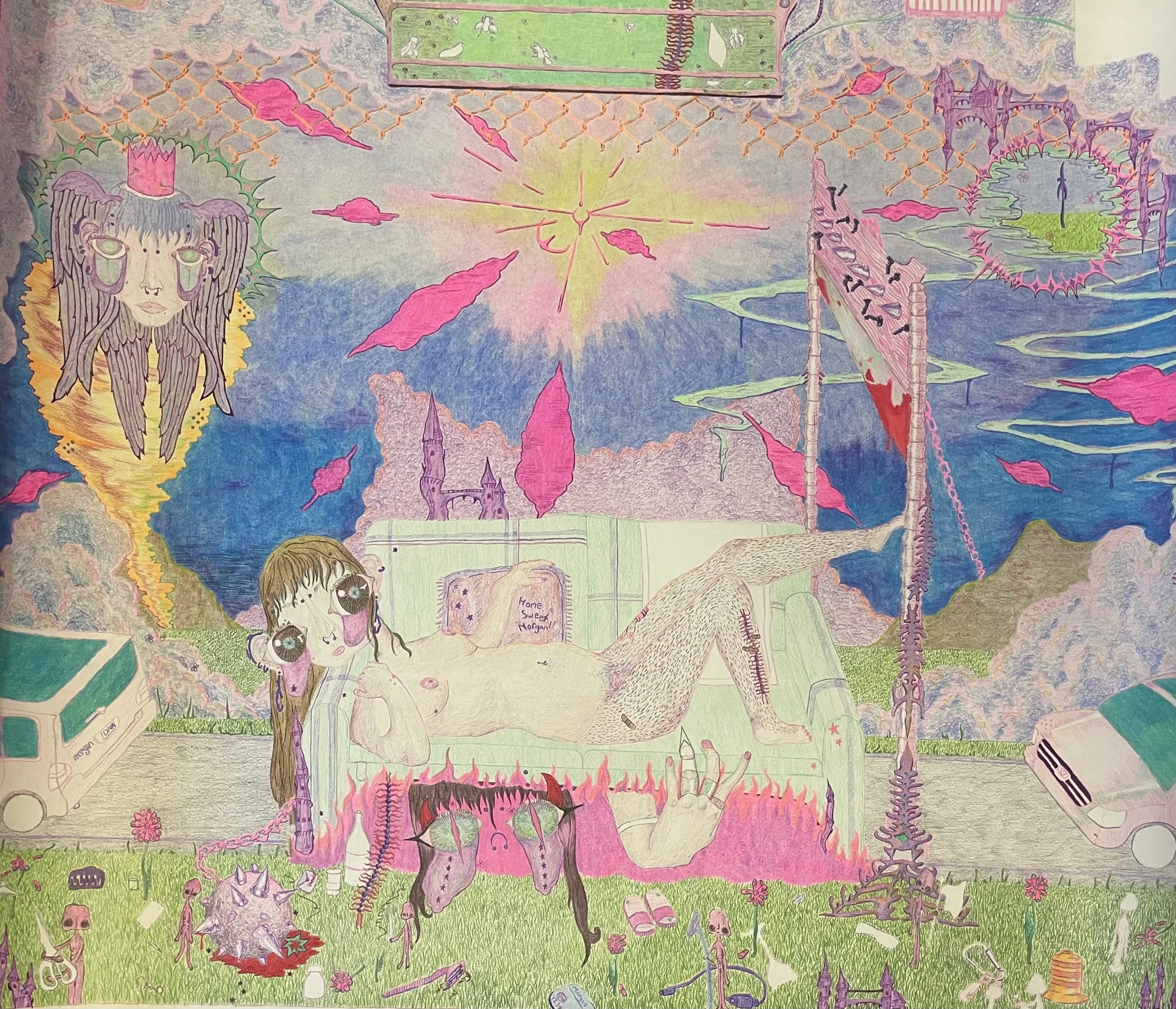 Morgan Hardigree is a Lexington, Kentucky-based interdisciplinary artist working in color pencil, printmaking, jewelry-making, and assemblage. Completing her BA in Art History and Studio Art at Transylvania University in May of 2025, she loves the surreal and uses memories, her own poems, movies, and found objects as inspiration for her practice that centers trans-femininity and queerness. Her writing and art has been published in both the Rambler and the Transylvanian, and she presented her art historical research at SECAC’s 2024 conference. Hardigree has participated in group shows in Transylvania University’s Morlan Gallery, the Shearer Student Gallery, and LexArts along with staging and curating her recent solo show Centipede Circling the Sun.